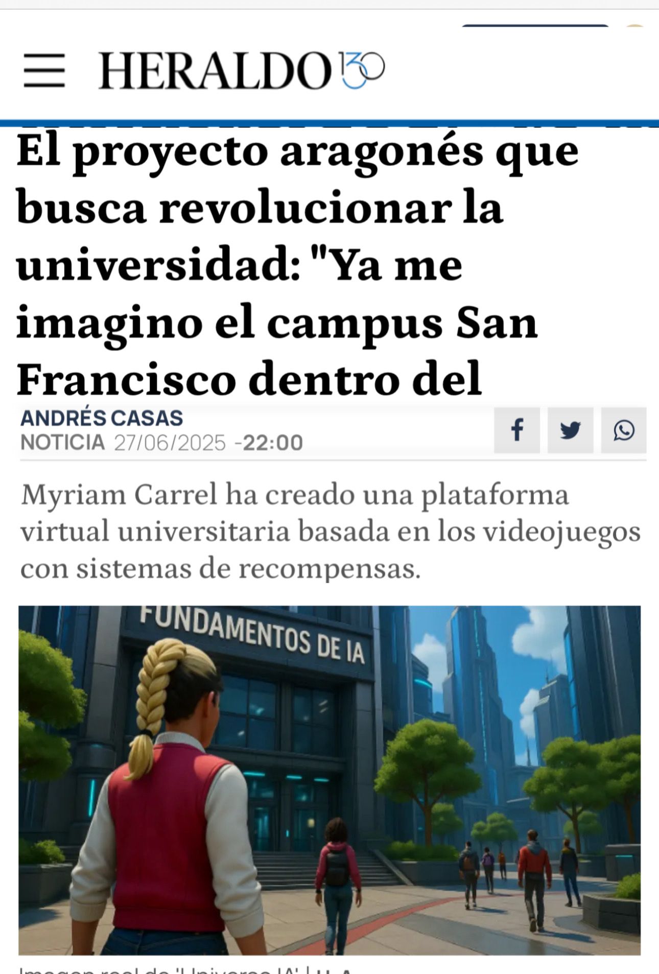 Creamos UNIVERSO IA, la primera plataforma educativa en formato videojuego AAA desarrollada en España, para que estudiar no sea una obligación… sino una aventura. ¿Por qué seguir usando plataformas planas, si más del 80 % de los jóvenes juega a videojuegos? Aquí, tú eliges: aprender como siempre o sumergirte en una ciudad futurista, con retos, misiones, recompensas y un avatar que te representa. Porque estudiar así es dopamina al servicio de tu futuro.