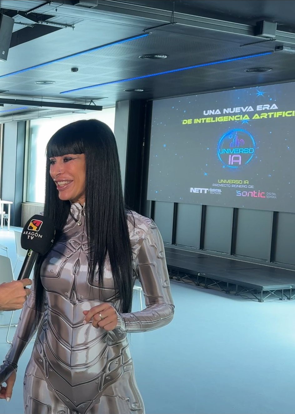En su última conferencia en el “preestreno” en Madrid de Universo IA, la 1a plataforma educativa formativa videojuego AAA en España, creada por NETT, para Universidades e instituciones educativas de prestigio nacional, apareció vestida de avatar
